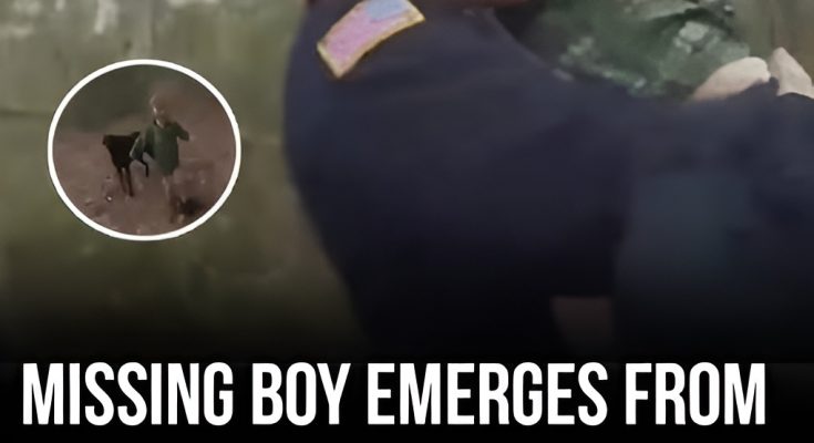Approximately one hour after the initial report, responders observed movement near the edge of the wooded area. The child emerged from the forest visibly distressed but physically unharmed. The family dog remained with him throughout the entire time away from home.